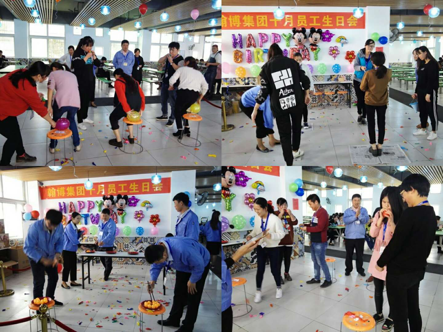 金秋十月,偉大的祖國迎來了第六十八歲的生日。翰博集團二百多位同仁和祖國母親一起也在本月迎來屬于自己的生日,為營造溫馨舒適的公司文化,也為了表達公司對員工的點滴關懷,由工會領導組織,在人事行政部協助下,公司于本月二十六日中午為 10 月生日員工在公司食堂舉辦一場盛大而隆重的生日會活動。
